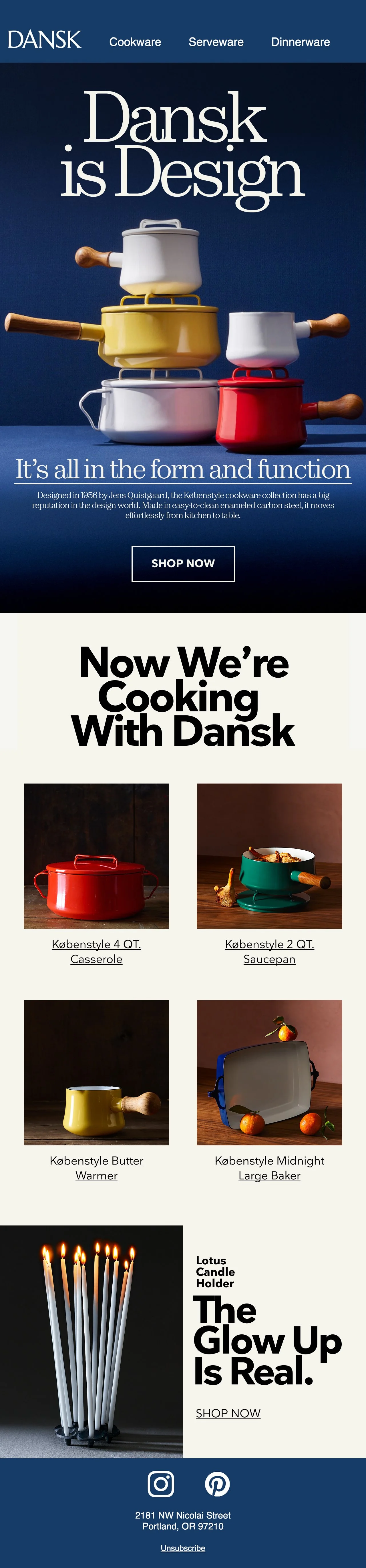 the design layout and sytle was inspired by the work of Tom Mcelligott a advertiser from the 1970-80’ as well as archival Dansk marketing materials. I wanted to the to ground the brand in its heritage while also maintain a sense of humor and modernity to the designs.